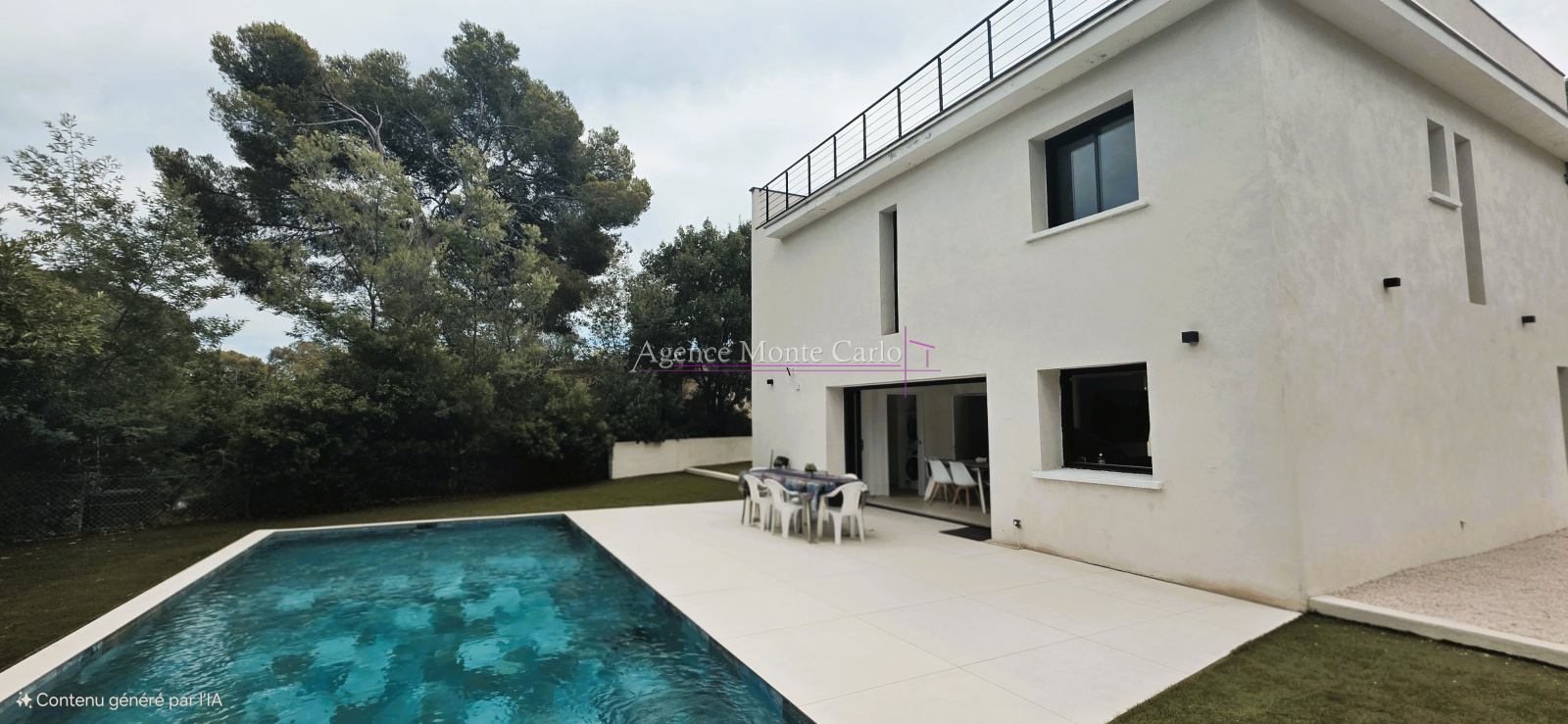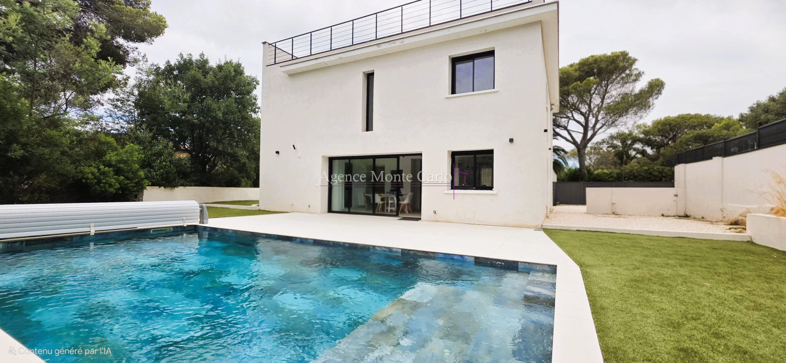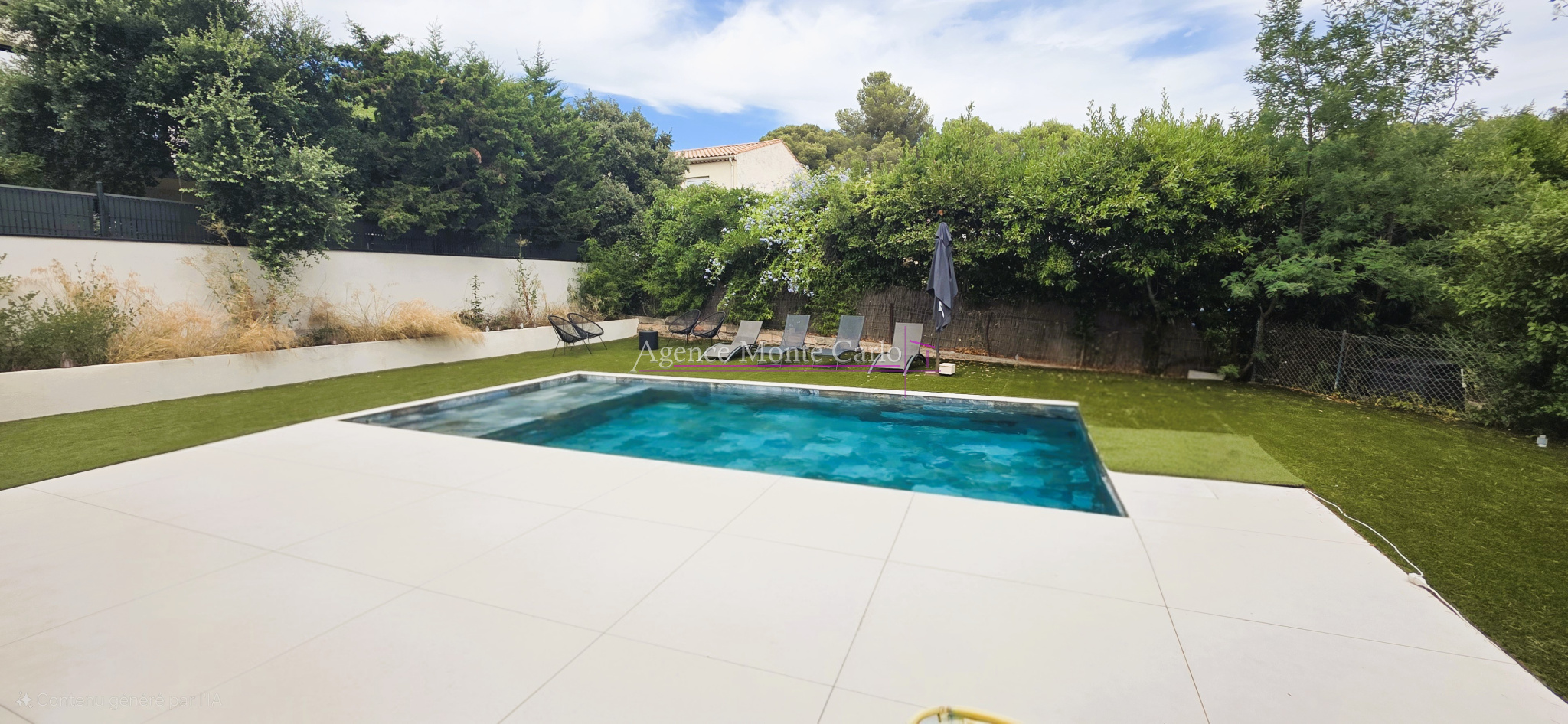 Jardin facile à entretenir, Une belle picine ensoleillée, un rooftop avec vue à 360m², un terrain de boules parcequ'on est dans le Sud... et la possibilité de garer 3 voitures dans la propriété.